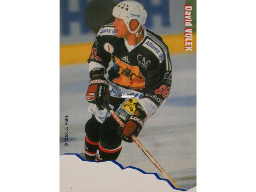 Collectible card of Czech ice hockey player David Volek. The card contains a photograph and basic information about the player. The photograph was taken by Jiří Koliš, an active Czech sports photographer. David Volek is a significant Czech ice hockey player with a rich professional career. Ice hockey is a traditional Czech sport. Hockey player collectible cards are popular pieces among enthusiasts. The quality of photography and card printing document professional workmanship. An ideal piece for collectors of Czech hockey cards. A valuable commemorative item documenting a Czech hockey player.