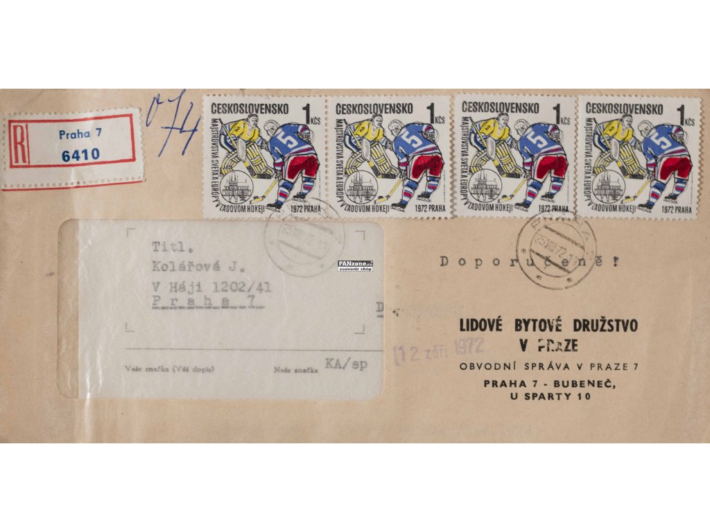 Filatelistická celistvost z Mistrovství světa v hokeji v Praze 1972. Obálka nese 4 poštovní známky a speciální razítko z data 25. srpna 1972. Jedná se o obálku s okénkem. Mistrovství světa v hokeji v Praze 1972 bylo významnou mezinárodní akcí. Československo mělo silnou hokejovou tradici. Filatelistické celistvosti z hokejových turnajů jsou vzácnými sbíratelskými kousky. Číslo 19 dokumentuje pozici v systematické sbírce. Obálka s okénkem je charakteristickou formou celistvostí. Ideální kousek pro sběratele filatelie a hokejových suvenýrů. Cenný pamětní předmět dokumentující československý hokej