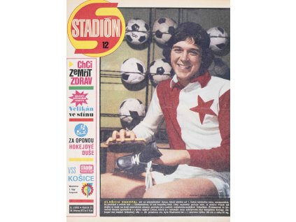 Časopis STADION, ročník XXVII, 20. III. 1973, č. 12 (1030). Oldřich Zakopal na titulní straně, VSS Košice - fotbal na zadní. Počet stran: 32