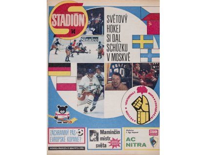 Časopis STADION, ročník XXI, 3. IV. 1973, č. 14 (1032). MS hokej Moskva na titulní straně, ŠAC Nitra - fotbal na zadní. Počet stran: 32