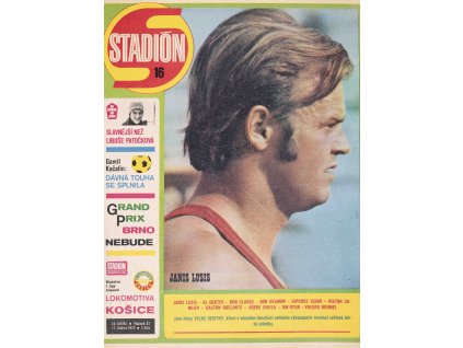 Časopis STADION, ročník XXI, 17. IV. 1973, č. 16 (104). Jenis Lusis na titulní straně, Lokomotiva Košice - fotbal na zadní. Počet stran: 32