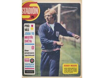 Časopis STADION, ročník XXI, 19. VI. 1973, č. 25 (1043). Boby Moor na titulní straně, Tatran Prešov - fotbal na zadní. Počet stran: 32