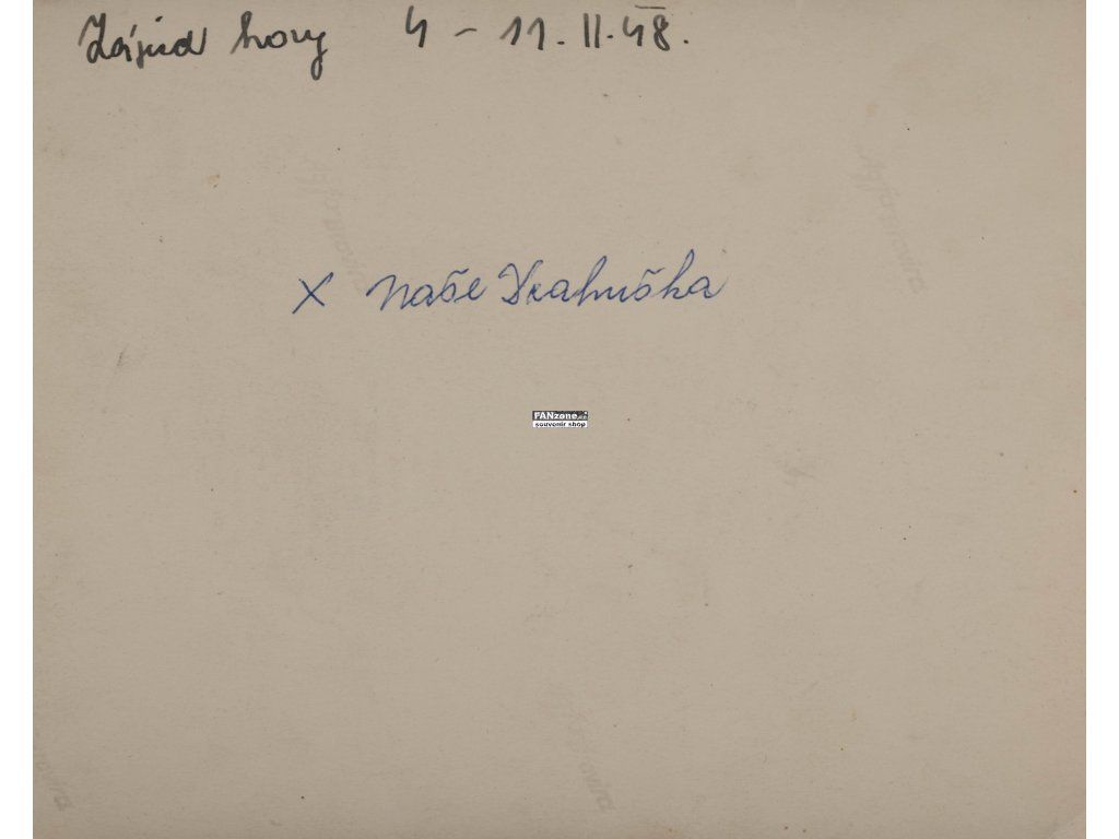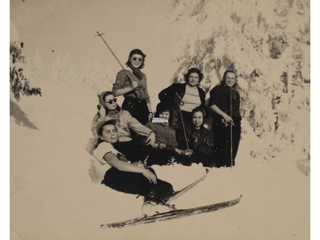 Černobílá fotografická dokumentace skupiny lyžařů během zájezdu do hor v roce 1948. Fotografia je popsána jako "naše Drahuška" a zachycuje osobu pojmenovanou Drahuška. Fotografia představuje skupinový snímek lyžařů. Rok 1948 patří k období post-druhé světové války. Lyžování patří k tradičním československým zimním sportům. Fotografia dokumentuje relaxační a sportovní aspekt života. Historická fotografia z roku 1948 je cenným archiválem. Ideální kousek pro sběratele československých historických fotografií. Cenný pamětní předmět dokumentující československý zimní sport