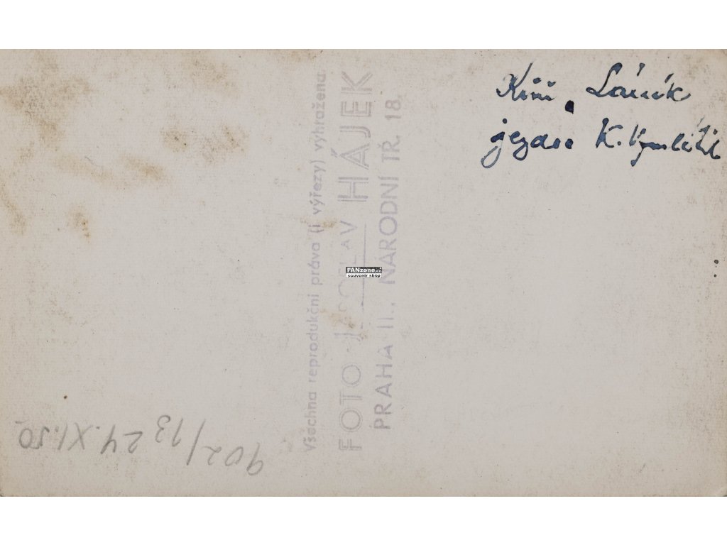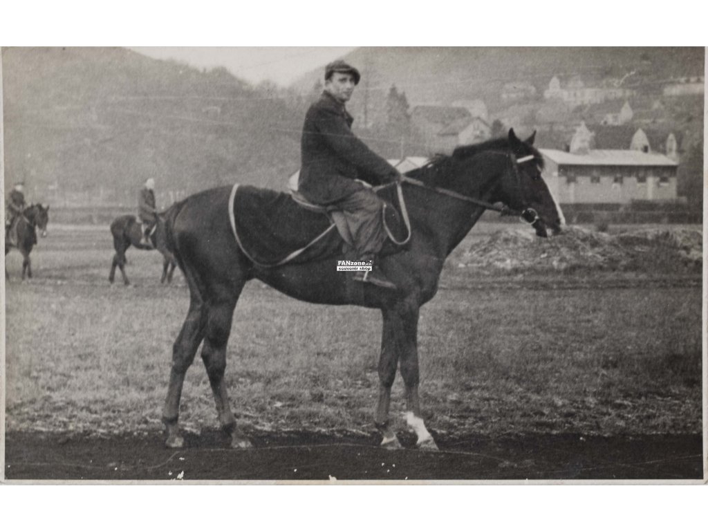 Autentická černobílá fotografie dostihového koně se jezdcem z roku 1950. Na fotografii se nachází razítko fotografa J. Hájka s číslem katalogu 902/13 a datem 24. listopadu 1950. Vpravo nahoře je vepsáno (obtížně čitelné) jméno koně Sámík a jméno jezdce počínající K. Vy, které je vzhledem k věku a kvalitě dokumentu pouze částečně čitelné. Jedná se o cenný fotografický dokument československého dostihového sportu z poloviny 20. století. J. Hájek byl československým fotografem, který se zaměřoval na fotografii dostihů a koňských sportů. Dostihový sport má v Československu dlouhou tradici a představuje důležitou součást sportovní kultury. Fotografie koně Sámíka se jezdcem dokumentuje specifickou sportovní událost a zachycuje atmosféru dostihového závodění. Ručně vepsaná jména na fotografii zvyšují její historickou hodnotu a dokumentační hodnotu. Razítko fotografa na fotografii představuje autentické označení a provenance. Černobílé provedení je charakteristické pro fotografii této doby. Fotografie nese stopy času, která svědčí o její autentičnosti a dlouhodobém uchování. Ideální kousek pro sběratele československých dostihových suvenýrů, historiků koňského sportu a fotografických artefaktů. Cenný pamětní předmět s neocenitelenou historickou a sbíratelskou hodnotou. Výjimečný artefakt propojující fotografickou dokumentaci se sportovní histori