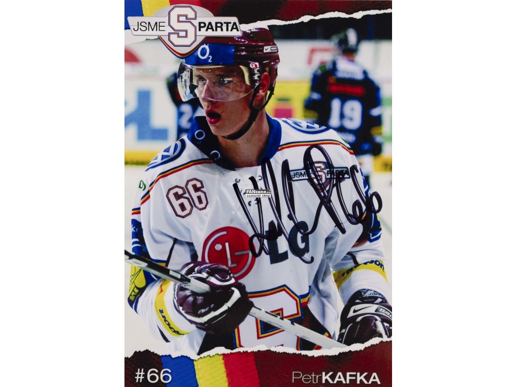 Originální barevná fotografie hokejisty Petra Kafky s číslem 66 v dresu HC Sparta Praha ze speciální edice Jsme Sparta. Cenný sběratelský kousek obsahuje autentický podpis hráče fixem. Fotografie zachycuje významného hráče pražského klubu, několikanásobného mistra extraligy a reprezentanta. Sběratelský předmět v perfektním stavu pro fanoušky a sběratele hokejových memorabilií.