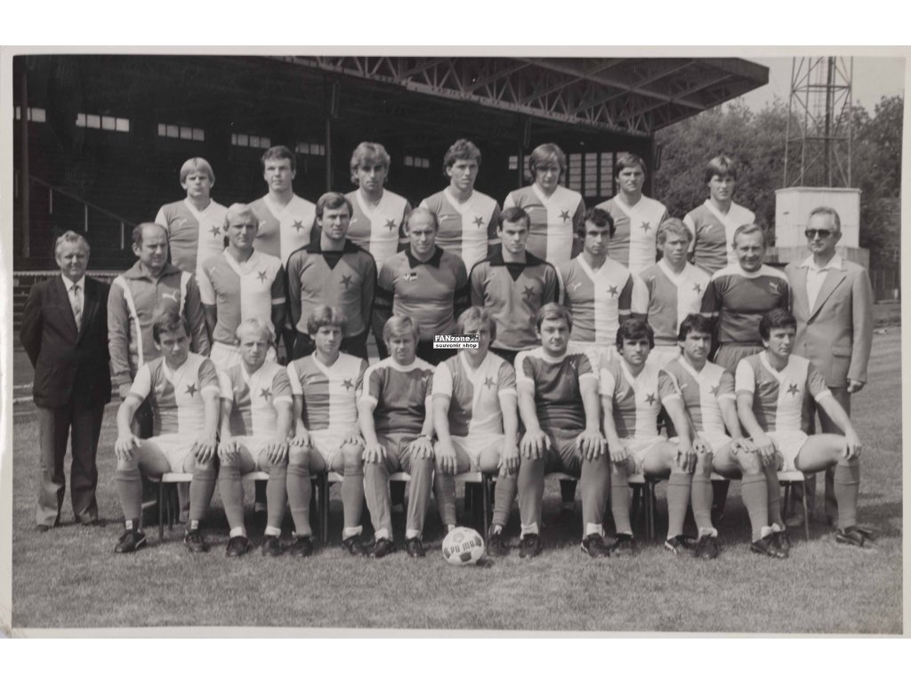 Autentická černobílá fotografie oddílu kopané TJ Slavia Praha ze stadionu Eden. Jedná se o fotografický dokument československého fotbalu. TJ Slavia Praha patří mezi nejvýznamnější československé fotbalové kluby. Stadion Eden je domovským stadionem klubu. Černobílá fotografie představuje archivní materiál vysoké kvality. Fotografie zachycuje atmosféru fotbalového prostředí. Ideální kousek pro sběratele československých fotbalových suvenýrů. Cenný pamětní předmět dokumentující československý fotbal a tradici Slavie