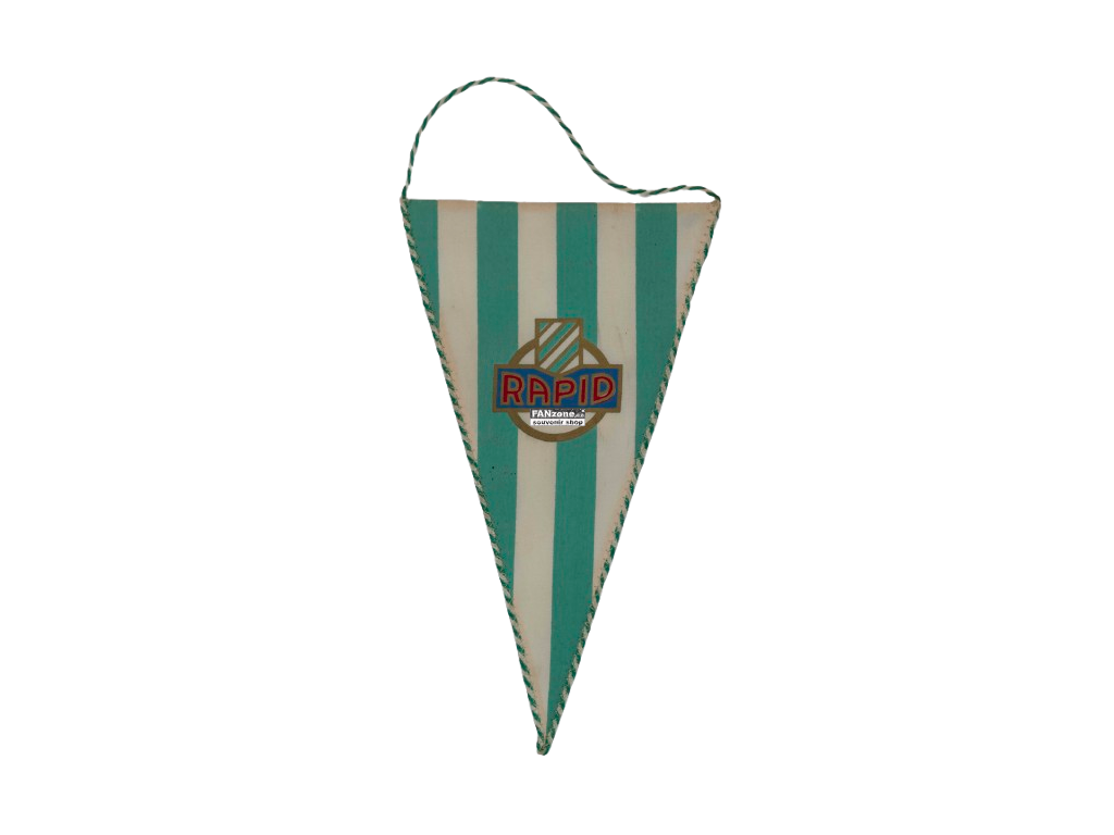 Klubová vlajka fotbalového klubu Rapid vyrobená z kvalitního textilu s tradičním tiskem. Vlajka je jednostranná s klubovým logem a motivy. Rapid patří mezi významné fotbalové kluby střední Evropy. Textilní provedení s tiskem dokumentuje vysokou kvalitu. Jednostranná výroba je charakteristická pro historické vlajky. Vlajka nese na sobě stopy času a používání. Ideální kousek pro sběratele rakouských fotbalových suvenýrů. Cenný pamětní předmět dokumentující fotbalovou tradici