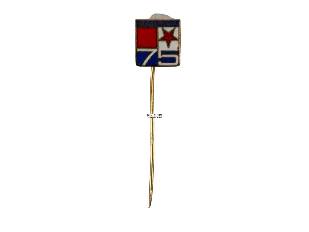 Autentický výroční odznak Slavia Praha k 75. výročí založení. Vyroben se smaltem a žlutým kovem bombírovaným s damaskováním na rubu. Vybaven jehlou připájenou kolmo s ohnutím o 90 stupňů. Znak Praha dokumentuje vydavatele odznaků. Slavia Praha patří mezi největší československé fotbalové kluby. Sedmdesátipáté výročí založení představuje významný okamžik v historii. Smalt jako materiál byl tradiční pro kvalitní odznaky. Žlutý kov bombírovaný s damaskováním dokumentuje vynikající zpracování. Výroční odznaky jsou vysoce ceňovanými sbíratelskými kusy. Ideální pro sběratele Slavia Praha memorabilií. Cenný pamětní předmět dokumentující historii Slavi