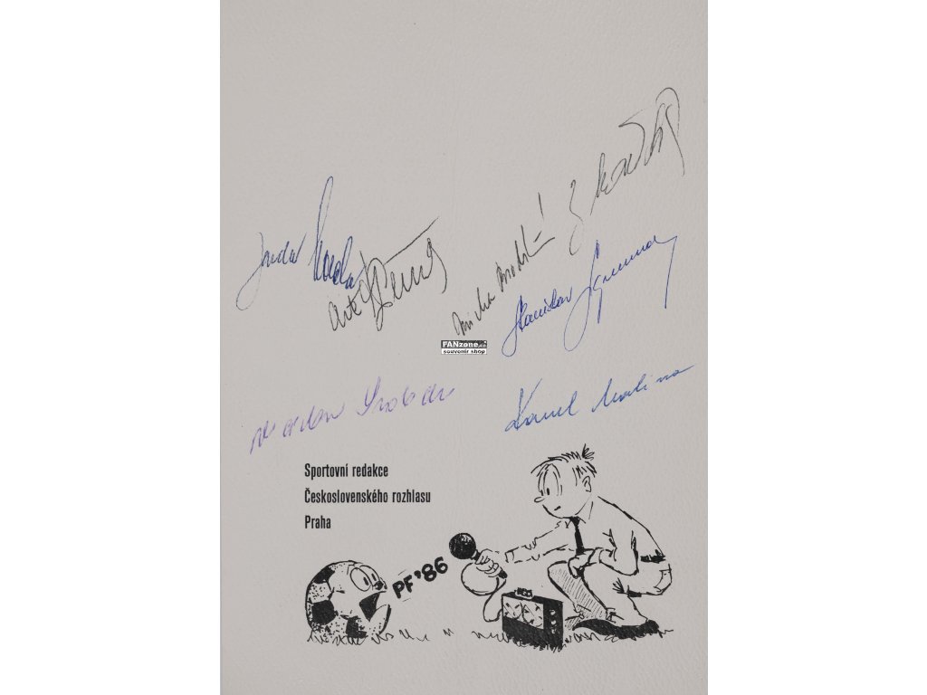Novoroční přání (PF 1986) od Sportovní redakce československého rozhlasu Praha. Jedná se o oficiální přání s podpisy členů redakce psanými propiskou. Československý rozhlas byla důležitou institucí sportovního reportáží a informací. Sportovní redakce patřila k předním oddělením rozhlasu. Rok 1986 představuje období aktivního československého sportu. Podpisy propiskou dokumentují autentičnost a osobní péči. PF novoroční přání jsou zajímavými sběratelskými kusy. Ideální kousek pro sběratele československých mediálních suvenýrů. Cenný pamětní předmět dokumentující československý rozhlas