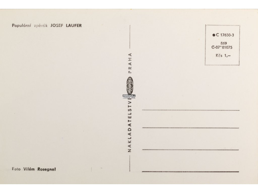 Originální pressfoto pohlednice populárního československého zpěváka Josefa Laufera, označená C-17650-6. Fotografie byla pořízena Vilémem Rosegnalem a pochází z období, kdy byl Laufer členem Odboru přátel. Pohlednice je v perfektním stavu - nenadepsaná a neprošlá poštou. Josef Laufer byl jedním z nejoblíbenějších československých interpretů populární hudby a jeho působení přesahovalo hranice hudebního světa do společenského života. Vzácná memorabilie pro sběratele československých hudebních osobností, milovníky populární hudby nebo fanoušky Josefa Laufera.
