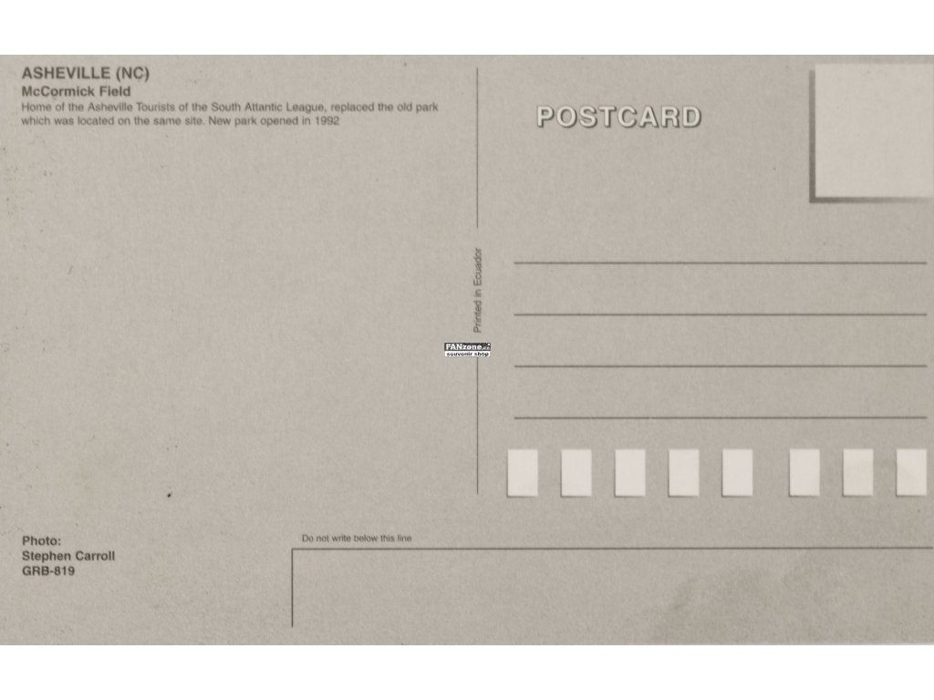 Originální pohlednice zachycující McCormick Field v Asheville, označená kódem GRB 819. Tento sběratelský kousek je v dokonalém stavu - neprošlý poštou, nenadepsaný a bez poštovní známky. Asheville je město v Severní Karolíně a McCormick Field je jedním z nejstarších baseballových stadionů ve Spojených státech, otevřeným v roce 1924. Stadion je domovem Asheville Tourists, Minor League Baseball týmu, a má dlouhou tradici v americkém baseballu. McCormick Field je známý svou malebnou polohou v Blue Ridge Mountains a reprezentuje klasickou americkou baseballovou atmosféru. Asheville má bohatou historii v Minor League Baseball a stadion je centrem místní sportovní komunity. Vzácná pohlednice ideální pro sběratele stadionových memorabilií, fanoušky amerického baseballu nebo milovníky Minor League Baseball a historických baseballových arén.
