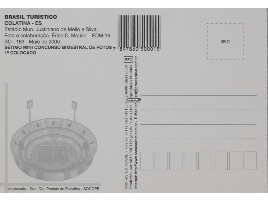 Originální pohlednice zachycující Estádio Municipal Justiniano de Mello e Silva v Colatině ve státě Espírito Santo (ES), Brazílie. Tento sběratelský kousek je v dokonalém stavu - neprošlý poštou, nenadepsaný a bez známky. Colatina je důležité město ve státě Espírito Santo v jihovýchodní Brazílii s přibližně 125 000 obyvateli, ležící na řece Doce. Název stadionu "Justiniano de Mello e Silva" je pojmenován po významné místní osobnosti spojené s městem nebo fotbalem. Espírito Santo je menší brazilský stát mezi Rio de Janeirem a Bahií s vlastní fotbalovou tradicí. Městský stadion slouží místním klubům a je centrem sportovního života v regionu. Brazilský fotbal je národní vášní a i města jako Colatina mají své kvalitní sportovní infrastruktury. Vzácná pohlednice ideální pro sběratele stadionových memorabilií, fanoušky brazilského fotbalu nebo milovníky jihoamerické fotbalové kultury.