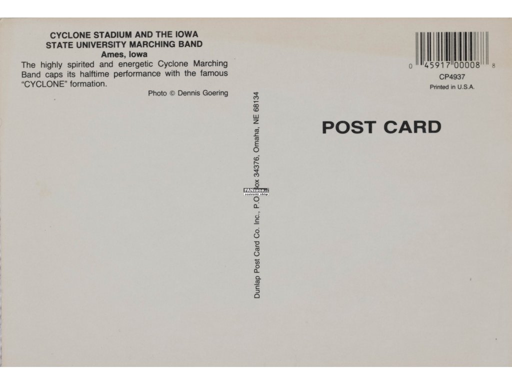Pohlednice amerického stadionu Cyclone Stadium na Iowa State University. Jedná se o neprošlou pohlednici v původním stavu – bez poštovního razítka, nenadepsanou a bez známky. Toto je autentický sběratelský kousek pro všechny milovníky amerického fotbalu a universitních stadionů. Pohlednice zachycuje historickou podobu Cyclone Stadium, který je domovským stadionem fotbalového týmu Iowa State Cyclones. Stadium představuje důležitou součást sportovní historie Iowa State University a amerického vysokoškolského fotbalu. Cyclone Stadium je jedním z nejznámějších universitních stadionů v Americe a má bohatou historii vytvářenou desítkami let soutěží a slavných zápasů. Originální fotografická pohlednice dokumentuje autentickou podobu tohoto kultovního stadionu. Originální stav pohlednice ji řadí mezi vzácnější kousky ve sbírkách amerických stadionů. Ideální pro sběratele amerických stadionů, historiky fotbalu a milovníky americké sportovní kultury. Výjimečný pamětní předmět s historickou a sbíratelskou hodnotou