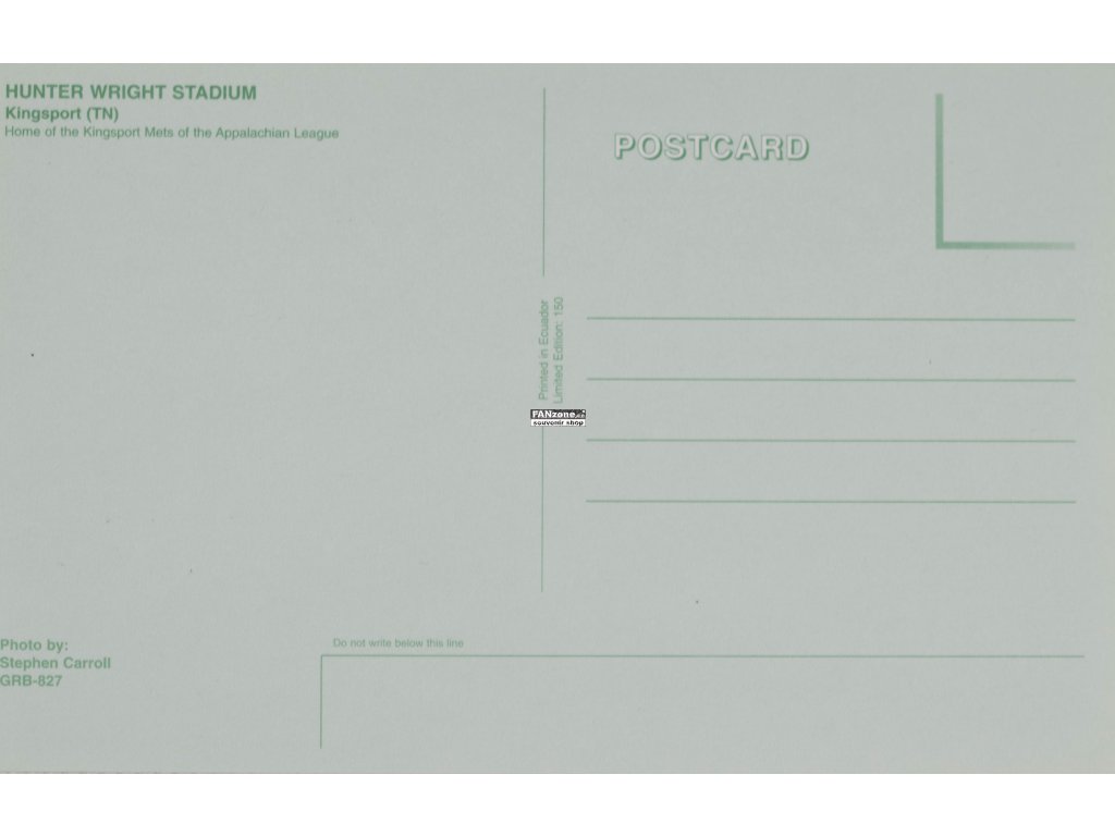 Originální pohlednice zachycující Hunter Wright Stadium, domov Kingsport Mets, označená kódem GRB 827. Tento sběratelský kousek je v dokonalém stavu - neprošlý poštou, nenadepsaný a bez známky. Kingsport je město v Tennessee v oblasti Appalachských hor na pomezí tří států. Kingsport Mets byl minor league baseballový tým, farmářský tým New York Mets působící v Appalachian League. Hunter Wright Stadium byl pojmenován po významné místní osobnosti. Appalachian League je rookie liga pro nejlepší mladé hráče, kteří začínají svou profesionální kariéru. Mnoho budoucích hvězd MLB začínalo v těchto malých stadionech v horských městech. Minor league baseball má v amerických menších městech nezastupitelnou kulturní a komunitní roli. Kingsport má bohatou baseballovou tradici. Vzácná pohlednice ideální pro sběratele stadionových memorabilií, fanoušky New York Mets nebo milovníky minor league baseballu a Tennessee