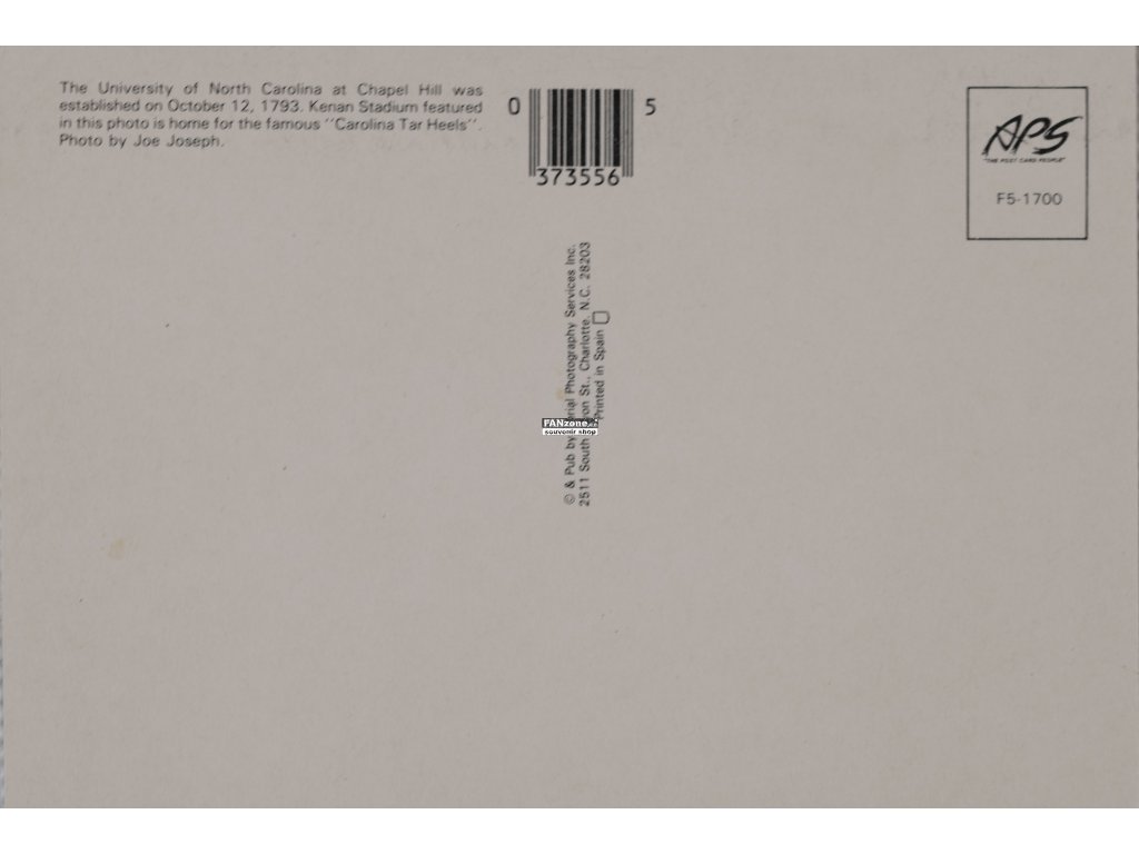Vzácná pohlednice amerického universitního stadionu University North Carolina at Chapel Hill. Jedná se o neprošlou pohlednici v původním stavu – bez poštovního razítka, nenadepsanou a bez známky. Toto je autentický sběratelský kousek pro všechny milovníky amerického vysokoškolského fotbalu a universitních stadionů. Pohlednice zachycuje historickou podobu stadionu University of North Carolina, která je jednou z nejznámějších a nejprestižnějších amerických univerzit. Stadion představuje domovské hřiště legendárního fotbalového týmu Tar Heels a je důležitou součástí sportovní tradice Chapel Hill. University North Carolina je historickou institucí amerického vzdělání s bohatou sportovní tradicí. Katalogové číslo FP-1700 dokumentuje provenance pohlednice. Originální fotografická pohlednice zachycuje autentickou podobu tego ikonického universitního stadionu z určité historické periody. Originální stav pohlednice ji řadí mezi vzácnější kousky ve sbírkách amerických universitních stadionů. Ideální pro sběratele amerických stadionů, historiky vysokoškolského fotbalu a milovníky americké sportovní kultury. Výjimečný pamětní předmět s historickou a sbíratelskou hodnotou