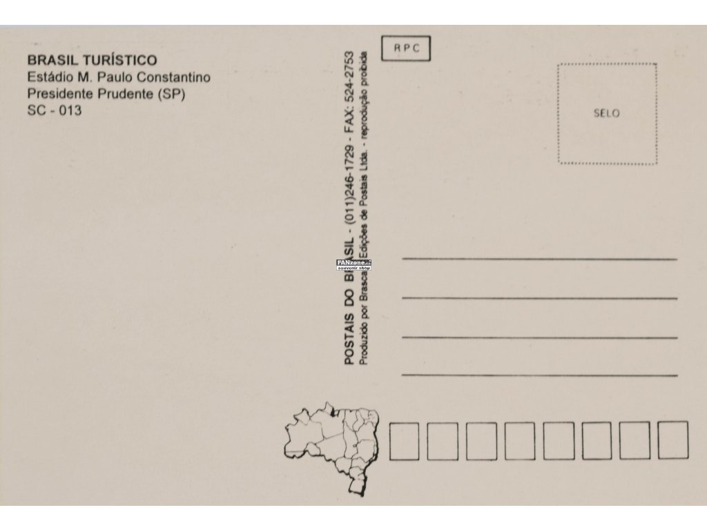 Pohlednice brazilského stadionu Estádio M. Paulo Constantino v městě Presidente Prudente. Jedná se o neprošlou pohlednici v původním stavu – bez poštovního razítka, nenadepsanou a bez známky. Toto je autentický sběratelský kousek pro všechny milovníky fotbalu a brazilských stadionů. Pohlednice zachycuje historickou podobu stadionu M. Paulo Constantino, který je důležitou součástí fotbalové historie Presidente Prudente a státu São Paulo. Estádio M. Paulo Constantino představuje tradici brazilského fotbalu v městě Presidente Prudente, jednom z důležitých fotbalových center v západní části státu São Paulo. Presidente Prudente je významné brazilské město se silnou sportovní tradicí a historickou vazbou na fotbalový rozvoj v regionu. Stadion je pojmenován podle M. Pauela Constantina, historické osobnosti související s rozvojem fotbalu v Presidente Prudente. Originální fotografická pohlednice dokumentuje autentickou podobu tohoto brazilského stadionu z určité historické periody. Originální stav pohlednice ji řadí mezi vzácnější kousky ve sbírkách brazilských stadionů. Ideální pro sběratele fotbalových stadionů, historiky fotbalu a milovníky brazilské sportovní kultury. Výjimečný pamětní předmět s historickou a sbíratelskou hodnotou