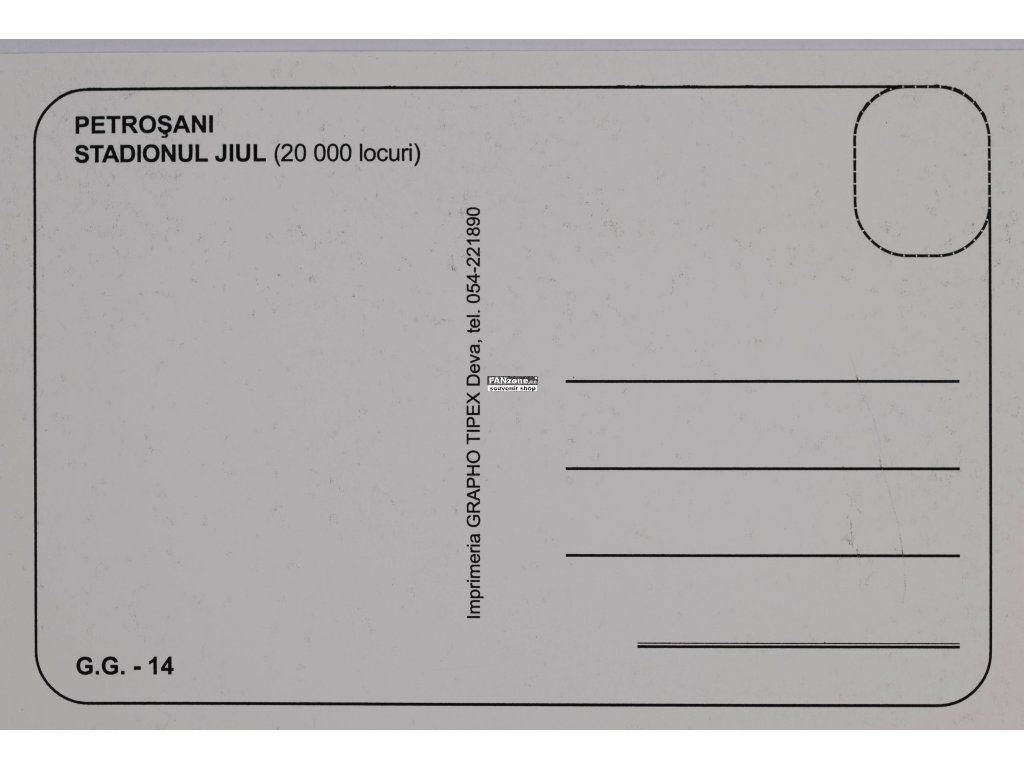 Pohlednice rumunského stadionu Stadion Jiull v Petrosani. Neprošlá pohlednice v původním stavu bez razítka, nadpisu a známky. Stadion Jiull je stadionem Petrosani. Petrosani je městem v Rumunsku se sportovní tradicí. Stadion představuje rumunskou fotbalovou infrastrukturu. Číslo katalogu GG - 14 dokumentuje provenance pohlednice. Originální fotografická pohlednice zachycuje autentickou podobu stadionu. Pohlednice představuje vizuální záznam rumunské sportovní kultury. Ideální pro sběratele rumunských stadionů a historiků fotbalu. Cenný pamětní předmět z rumunské fotbalové histori