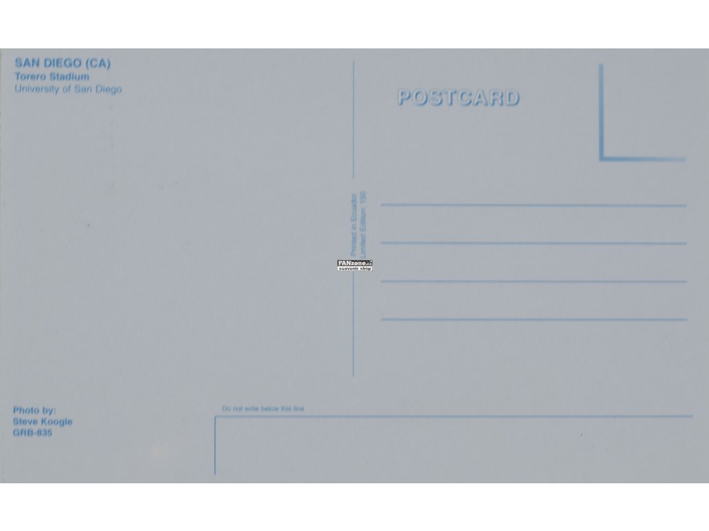 Originální pohlednice zachycující Torero Stadium v San Diegu, Kalifornie, označená kódem GRB 835. Tento sběratelský kousek je v dokonalém stavu - neprošlý poštou, nenadepsaný a bez známky. Torero Stadium je fotbalový stadion na kampusu University of San Diego (USD), pojmenovaný po maskotovi univerzity - Torerovi (toreadorovi). Stadion slouží především pro universitní fotbal a atletiku a má kapacitu několik tisíc diváků. University of San Diego je soukromá katolická univerzita založená v roce 1949. San Diego je město v jižní Kalifornii známé příjemným klimatem a silnou sportovní kulturou. Universitní sporty mají v USA významnou tradici a stadiony slouží nejen studentům, ale i místní komunitě. Název "Torero" odráží španělské a mexické kulturní vlivy v regionu. Vzácná pohlednice ideální pro sběratele stadionových memorabilií, fanoušky universitního sportu nebo milovníky kalifornské sportovní kultury.