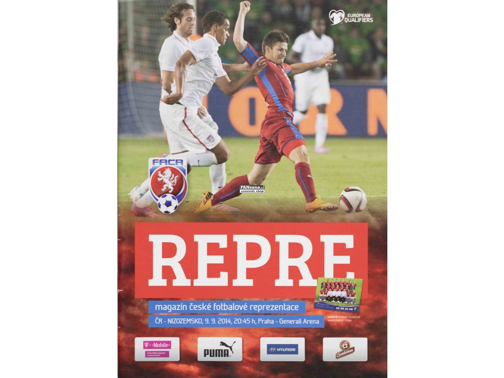 Autentický fotbalový program ze zápasu České republiky proti Holandsku konaného 9. září 2014. Jedná se o REPRE-magazín vydávaný Českou fotbalovou reprezentací, který je oficiálním programem zápasů národního týmu. Program má 32 stran a obsahuje podrobné informace o obou týmech, hráčích, trenérech a dalších relevantních údajích ze života reprezentace. REPRE-magazín je prestižní publikací určenou fanouškům české reprezentace a představuje oficiální dokumentaci zápasu. Zápas ČR proti Holandsku v září 2014 byl součástí kvalifikačních či přátelských zápasů a patří k důležitým momentům české fotbalové reprezentace. Čeští fotbalisté proti Holandsku předstupují proti jednomu z nejlepších evropských týmů. Program je unikátním záznamem konkrétního zápasu a zachycuje atmosféru dané doby. Fotbalový program je nezbytným sběratelským kouskem pro fanoušky české reprezentace a milovníky českého fotbalu. Ideální pro sběratele fotbalových suvenýrů a dokumentů. Cenný pamětní předmět s historickou a sbíratelskou hodnotou.