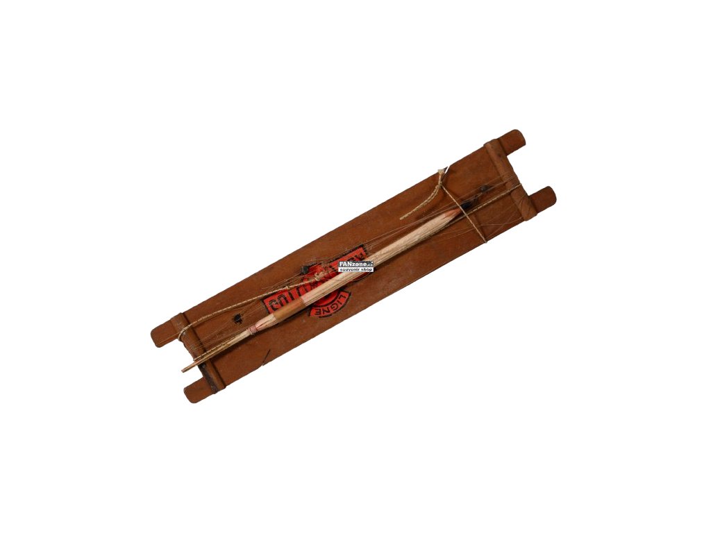 Autentická francouzská rybářská udice s charakteristickým dřevěným základem a plastovým splávkem ve formě brčka. Na udici jsou patrné zbytky původního silonu, což dokládá její skutečné používání v minulosti. Tato historická udice reprezentuje tradiční francouzský způsob rybolovu a řemeslné zpracování. Jedinečný sběratelský předmět pro milovníky vintage rybářského vybavení, französských memorabilií nebo zájemce o historii a vývoj rybářských technik. Kombinuje funkční design s nostalgickou hodnotou.