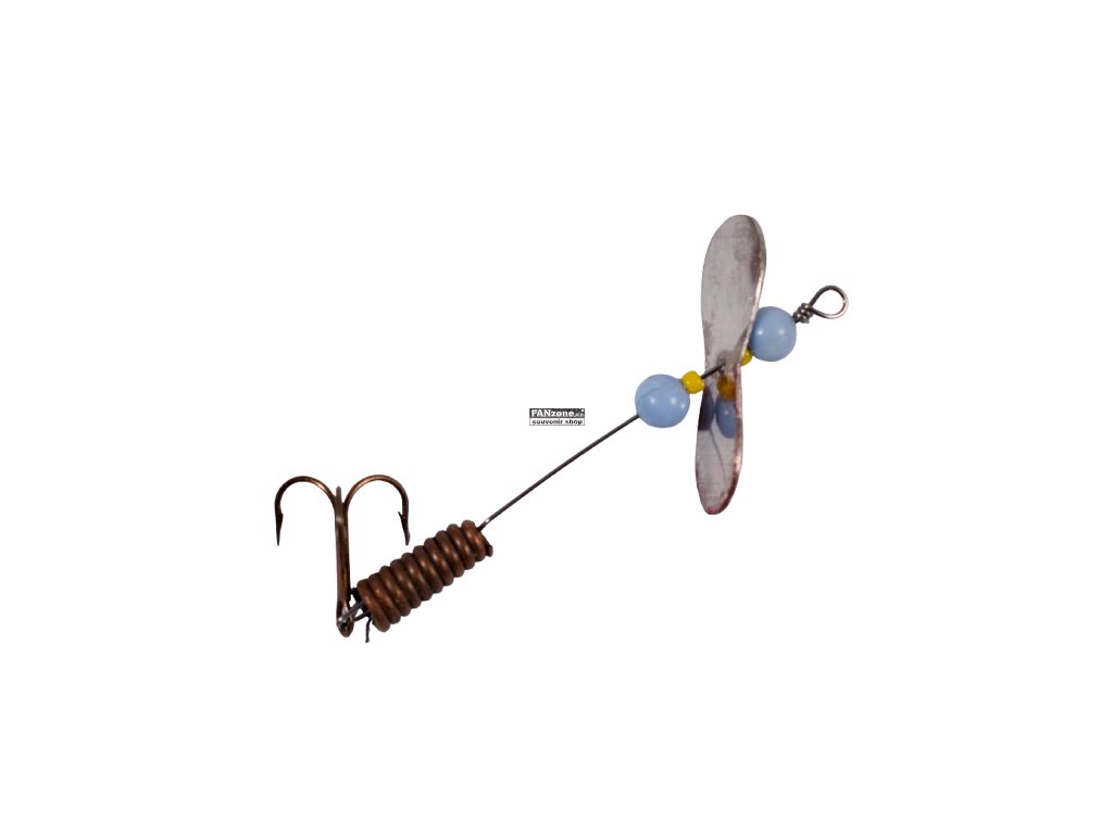 Autentická umělá rybářská nástraha typu třpytka rotační s lopatkou a trojháčkem. Jedná se o originální tradičnímu designu používaný při lovu dravých ryb. Rotační třpytka patří k nejvíce efektivním typům umělých nástrah. Lopatka umožňuje přirozený vibrační pohyb ve vodě. Trojháček zajišťuje bezpečné zachycení ryby. Třpytka kombinuje vizuální a vibračný podnět pro ryby. Vintage rybářské nástrahy jsou populárními sběratelskými kusy. Originální provedení dokumentuje tradici evropského rybářství. Ideální kousek pro sběratele vintage rybářského vybavení. Cenný pamětní předmět dokumentující tradici rybolovu